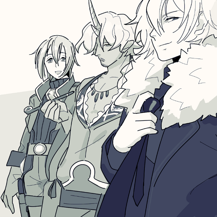 2015/02/03 Category : 未分類 お借りしまして 右から(カッコ内は作者様)峰川晃さん(紀ノ定さん)物理的にも精神的にも私を見下して下さいぃぃ(:.;゚;Д;゚;.:)ハァハァ クロヴェルさん(海づきさん)髭のイケメン(ここ重要)おじ様に惹かれました(:.;゚;Д;゚;.:)ハァハァクールな感じで描いてしまいましたが、実際はムードメーカーだそうです。セブンスさん(パピコさん)他の二人とは正反対なキャラを描きたくなったので。その優しい瞳に癒やされたい(:.;゚;Д;゚;.:)ハァハァその時描きたい人を並べて描いただけなので、統一感は無いですが私は描けて満足です!ありがとうございました!また宜しくお願いしまっす。