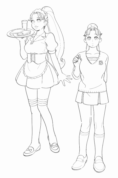 2014/11/21 Category : 未分類 新バナナ ニューバナナは、以前の服をバイト先である喫茶店の制服として採用。右は普段着のイメージで、スクールガールぽい感じ。靴は、自分より小さい彼氏に気を使って(笑)ローファーでもスニーカーでも、とにかくペッタンコ。ちなみにバナナのバイト先は、主におじさんのお客さん達で賑わう喫茶店。職場で上司に叱られ、家では女房子供に煙たがられ、居場所を失ったお父さん達の癒やしスペースなのです(゜ーÅ)ホロリさて、未だに色のついてない絵を出す所で、キャラ絵の進み具合バレバレですが、九州場所も今度の日曜で終わるので、そしたらキャラ絵も進捗すると信じて_(┐「ε:)_
