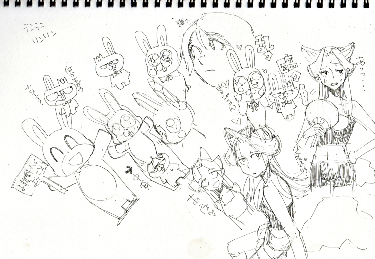 2016/08/22 Category : 未分類 らくがき らくがきばっかりですが(;´Д`)しばらく続きます。暇になるまでは…。ちなみに左のうさぎの着ぐるみに乱々臨々は入って商店街をうろうろしています。しかし中がこうなってるとは誰も知りません|З`)リクエスト頂いた乱々臨々も少しちゃんと別で描きますので( ´∀`)bグッ!あと夏の絵も。