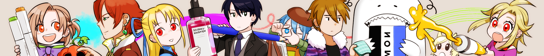 2014/07/05 Category : 未分類 わちゃわちゃ 某所のヘッダ用に描いたイラストです。一部のメンバーさんの創作キャラお借りしました!見難い方はコチラ各々可愛い可愛いと、自画自賛を声に出しながら描いてました(笑)金太郎がちょこっといます。そしてこちらは、1人絵チャで描いた紀ノ定さんちのリオちゃん。袖かわいいムフッ PR