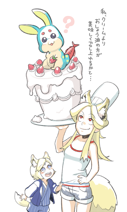 2014/03/13 Category : 未分類 お醤油推奨。 お祝いイラストの構図考えながら色々描いてたら、別にこんなの描いてしまいました。平田さんちのミリアちゃんをケーキにトッピングした凛with金太郎。ミリアちゃんが、釣られて食べられそうになった時に出た名台詞、「あ、私お醤油につけると美味しいかと・・・」がツボにはまってから大好きに。なので、きっとこんな時もお醤油推奨なんじゃないかと。凛は食べそうだけど、太郎がきっと止めてくれるはず!ちなみに、実際のミリアちゃんはもっと小さくて手乗りサイズの可愛いらしい『うみうさ』という謎の生物です。