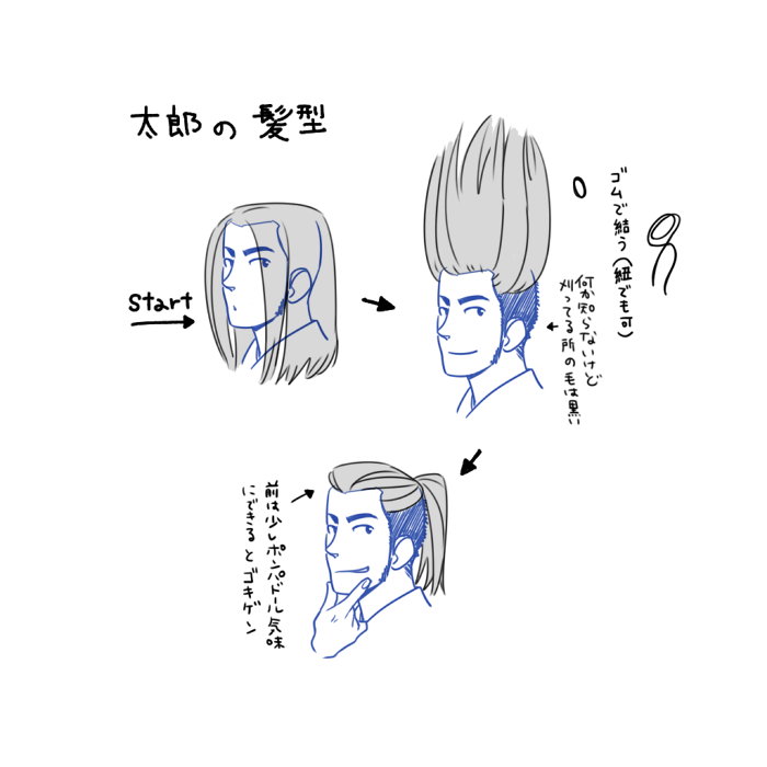 2013/04/17 Category : 未分類 ヘアースタイル 凛と太郎の髪型どうなってるの?というご質問を頂いたので、解説イラストを描いてみました。これで如何でしょうか!?解るかなー?(;´∀`)