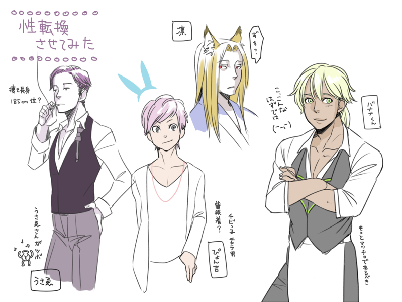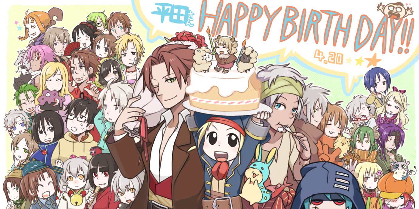 2013/04/20 Category : 絵チャ ハッピーバースデー&エチャ 4月20日だョ!平田家全員集合ー!! 4月20日は平田さんの誕生日でした。この機会に平田さんのキャラクター全員を描いて「あっ」と驚かせよう(ΦωΦ)フフフ…お祝いの裏に隠されたべーたなの企みから平田さんは逃れられるのかーー!!?はい、なんかこのテンションで続けられないので戻ります。お誕生日当日であります本日お昼頃、お渡ししましたが喜んで頂けたみたいで贈った私もハッピーでした(*・ω・*)平田さんお誕生日おめでとうございます!!そしてその後は、毎度お楽しみのエチャ。今回は、特にお題を設けず好きなのを描くってことで、平田さんはうちの『湯屋あぶらげ』一家を描いてくれました!実は自分では3人一緒の絵を描いたことないという事に気づいて反省(;´∀`)そんな私は、平田さんちの右からギルバートさん、シルヴァさん、エヴァンさんを勝手に『イケメン トリオ』と題して描いてしまいました。平田さん的にはイケメンはエヴァンさんだけらしいのですが、喜んで頂けたのでホッとひと安心。という感じで、お誕生日というめでたい日に時間を共有できて嬉しかったです。来年はもっとキャラが増えているのだろうか・・・腕がなるぜ!