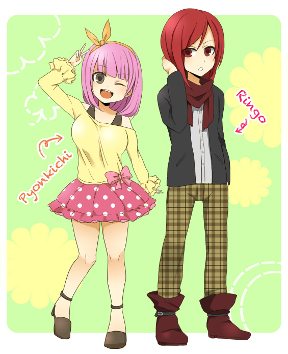 2013/03/21 Category : 未分類 衣装描き合いしました! わだかまりの平田さんと“お互いのキャラの衣装を描き合う”をしましたー。beetana/エヴァンさん若干大きめのココエヴァンさんは海賊でイケメン担当なのでイケメンを意識して描きました。そしてセクシーさを出すために胸元パカーンヽ( ´¬`)ノ もっと凝った衣装描けるようになりたい!!平田さん/リンゴ&ぴょん吉リンゴの男の子服は私のリクエストで御座います(*´∀`*) なんで女装してるんだっけ?と思う程男の子の格好が似合い素敵(*´ェ`*)ポッぴょん吉は26歳なのに水玉のスカート着て、年齢気にして若作りしてる感じがぴょん吉ぽくて普段着として是非採用したいです。平田さん可愛く描いてくれてありがとーございましたーー!!ヽ( ´∀`)ノ面白い交流だったので平田さんとも他の方ともやってみたいです(*´З`)