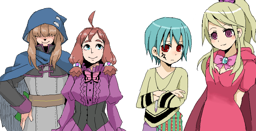 2013/03/24 Category : 絵チャ 衣装チェンジ絵チャしました またまた平田さんと衣装チェンジ絵チャしました!前回の絵チャはこちら今回Skype通話しながだったんですが、キーボードに触らなくていいのは楽ですね(*´∀`*)それに文章だと説明に時間がかかる事も口頭だと早いです。しかし、話しに夢中になり過ぎた私は“アンナさんの衣装を着たコナ”を描かなきゃいけないのに、アンナさんを描き始めるというアクシデントを起こしてしまいました(;´∀`)おしゃべりおばさん確定。それにしてもコナの顔が伸びて可愛くない(; ・`д・´)修正したい気持ちを抑えつつ・・・。 カプリスはフード時代に戻ったみたいで懐かしかったです。前髪で顔も見えないのにフードまで被って何なんだコイツは(笑)そして、アンナさんの谷間ご馳走様でした(^q^)アンナさんは女性らしい服は何でも似合いそうですね。着せ替えしたいぜ!!ミスラ君はフード取ると更に可愛いのです。皮肉屋だけど実は寂しがり屋らしいので、おばさんが抱っこしてあげようかね!!・∀・)オイデオイデ衣装チェンジ絵チャもっとやりたいですが、平田さんのキャラは私のキャラの3倍以上なので、うちの子足りないよ(;´∀`)ひとまず私のキャラを一巡するまでやりたいです。その後の事はその時考える!!!あ、うちの子の服のパターンを増やす手もある・・・か。おまけ。pixivチャットで描いてくれたミリアちゃん。可愛かったので即保存。