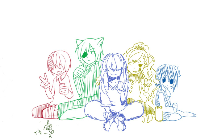 2013/03/27 Category : 絵チャ 同窓会!? 先日、シギノヤキさんことシギっちゃんとpixivチャットでお試し絵チャをしました。私が描いたカプリスの後ろにあのジョーカー様降臨!!!ヽ( ´¬`)ノ左下のイヤースは途中参加してくれたゆっさん作。pixivチャットはキャンバスも広いしレイヤーがあったりカラーパレットが見やすかったり、良い事だらけかと思いきや途中ガンガン落ちまくってたので、今のところはタカミンが安定してて良いかも。 まぁ落ちまくってたけど、キャラの話が出来てとても楽しかったです。その後、pixivチャットで描いたものにシギっちゃんちのキャラをさらに描いてくれました・・・!!さらに他のキャラも描いて下さって最終的に10名にもなっていて懐かしさに思わずホロリ。他の方のキャラが描かれているものは掲載許可を頂いてないので載せられませんが、すごく楽しいイラストでした(*´∀`*) 記事の続き