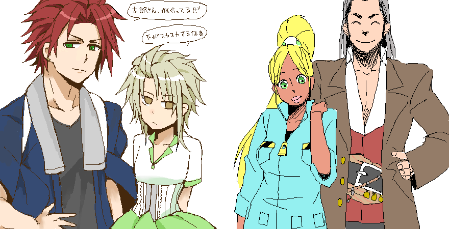 2013/03/13 Category : 未分類 またまた描いてもらったぞー! どうも!最近うちのこ描いてもらいまくりのbeetanaです!わだかまりの平田さんがエヴァンさんとリノちゃん(船長さん)と、うちのバナナで交流絵描いてくれました!リノちゃんはバナナのスタイルと自分を見比べて(´・ω・`) ショボーンってなってるとこだそうです。まだ子供だから成長の見込みあるよーって言ってあげたいんですが、子供扱いはお好きじゃないようなので逆効果?(*´З`) それとエヴァンさんは女の子の悩みで笑っちゃ駄目ですよ (`・ω・´)バナナも可愛くて嬉しいです!またどうぞお気軽に!平田さん、素敵な交流絵ありがとうございました~ヽ( ´∀`)ノそしてこっちはバナナコス大藪さん。ネタ元はこないだの絵チャです|З`)